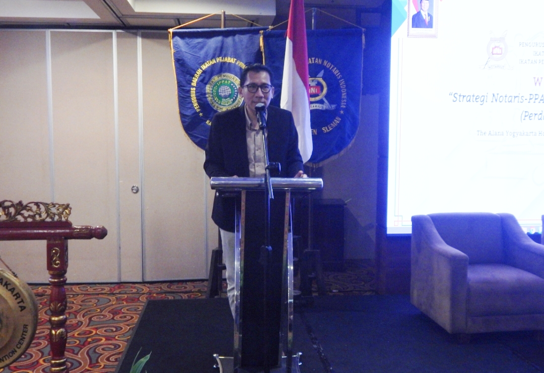Ketua Pengda Kabupaten Sleman INI – IPPAT, Indro Putro, S.H menekankan, bahwa profesi Notaris dan PPAT sangat rentan terhadap tarikan perkara pidana maupun perdata, sehingga pemahaman strategi hukum menjadi krusial untuk perlindungan diri.