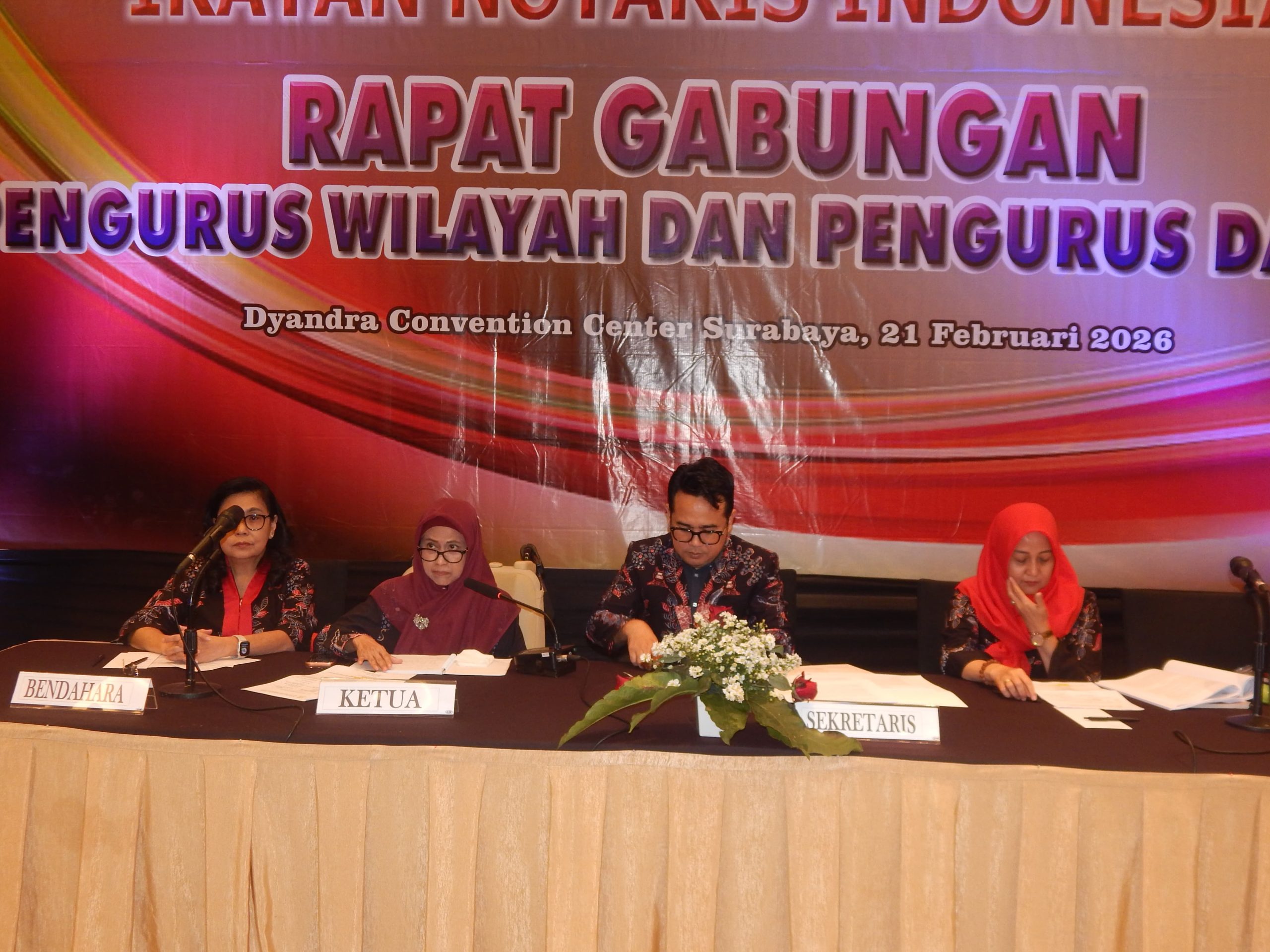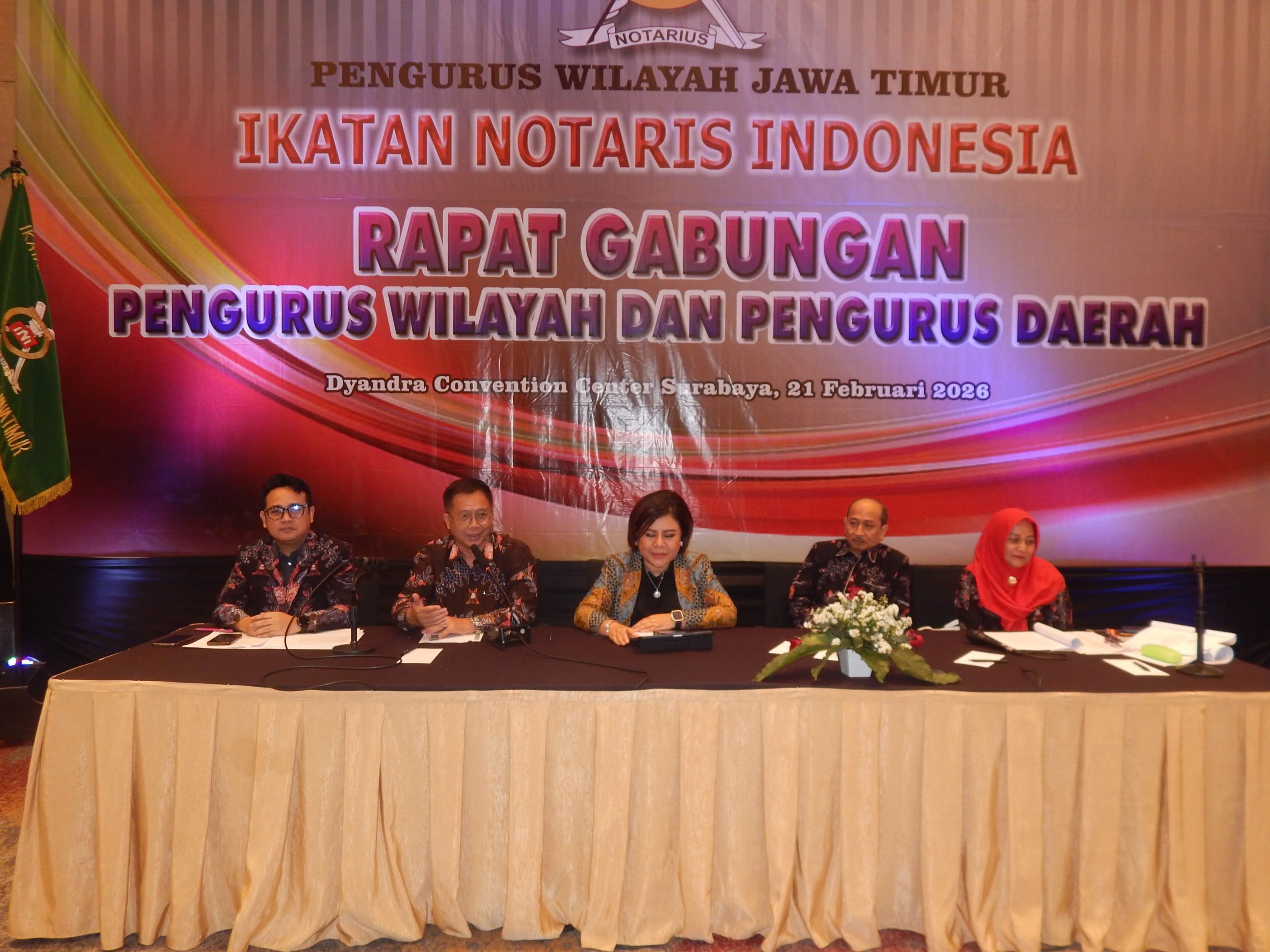 SURABAYA(Indonesiapunlisher.com) – Bertempat di Dyandra Convention Center   Jln.Basuki Rahmat No.93-105, Embong Kaliasin, Kec. Genteng, Kota  Surabaya, hari Sabtu, 21 Februari 2026 mulai pukul 15.00 wib hingga selesai, Pengurus Wilayah Jawa Timur Ikatan Notaris Indonesia ( Pengwil Jatim INI) menggelar acara Rapat Gabungan bersama Pengda- pengda INI se- Jawa Timur.