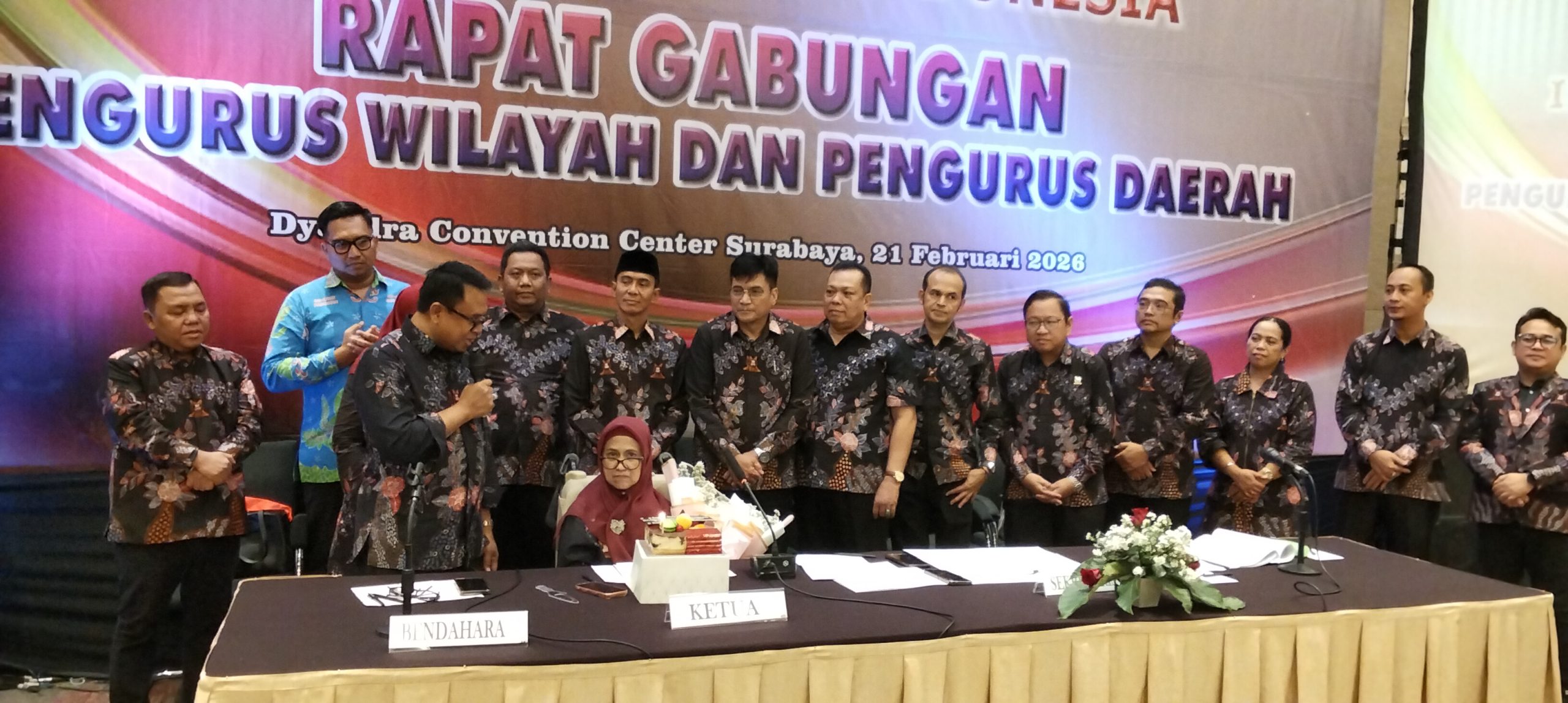 Foto Bersama Jajaran Pengwil Jawa Timur INI, Panitia Pelaksana, DKW, serta Pengda- Pengda INI Se- Jawa Timur dalam kegiatan acara Rapat Gabungan Pengwil Jawa Timur INI Dan Pengda Se- Jawa Timur pada hari Sabtu (21/2/2026) bertempat di Dyandra Convention Center Surabaya.