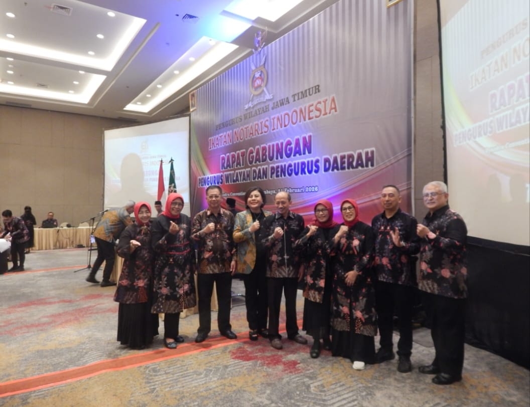 SURABAYA(Indonesiapunlisher.com) – Bertempat di Dyandra Convention Center   Jln.Basuki Rahmat No.93-105, Embong Kaliasin, Kec. Genteng, Kota  Surabaya, hari Sabtu, 21 Februari 2026 mulai pukul 15.00 wib hingga selesai, Pengurus Wilayah Jawa Timur Ikatan Notaris Indonesia ( Pengwil Jatim INI) menggelar acara Rapat Gabungan bersama Pengda- pengda INI se- Jawa Timur.
