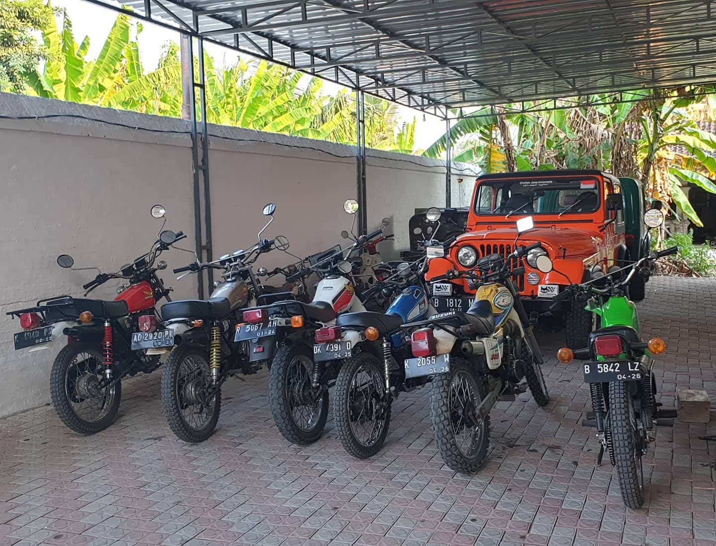 Koleksi mobil dan motor klasik sebagian berjajar digarasinya