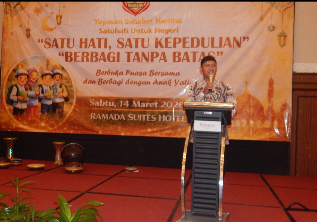 Ketua Pengurus Yayasan Sahabat Herlina Satu Hati Untuk Negeri (YSH SUN), H. Ahmad Natsir, S. H., Sp. N dalam sambutannya menyampaikan, Kegiatan hari ini bukan sekadar rutinitas berbuka puasa bersama. Nama yayasan kita, Sahabat Herlina Satu Hati Untuk Negeri (YSH SUN), membawa amanah besar. Tema kita hari ini, “Satu Hati, Satu Kepedulian, Berbagi Tanpa Batas”, adalah pengingat bahwa di dalam rezeki yang kita miliki, ada hak saudara-saudara kita, terutama anak-anakku yatim piatu yang hadir di sini.
